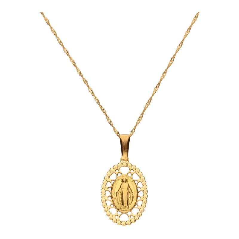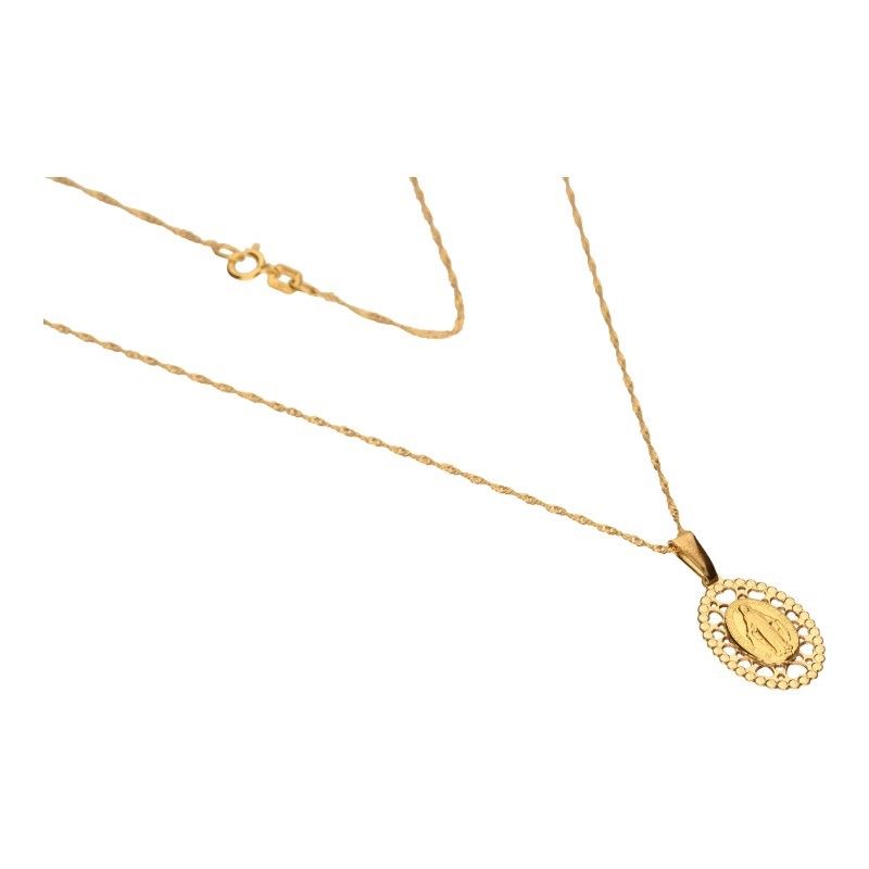 Komplet złoty 333 z delikatnym łańcuszkiem i medalikiem to wyjątkowy i symboliczny prezent idealny na komunię. Wykonany z wysokiej jakości złota próby 333, komplet składa się z delikatnego łańcuszka i subtelnie zdobionego medalika. Jego elegancki wygląd i staranne wykonanie dodają mu wyjątkowego blasku i klasy. Ten komplet złoty 333 z delikatnym łańcuszkiem i medalikiem jest idealnym prezentem, który podkreśli znaczenie i uroczystość komunii, będąc jednocześnie trwałą pamiątką na lata.