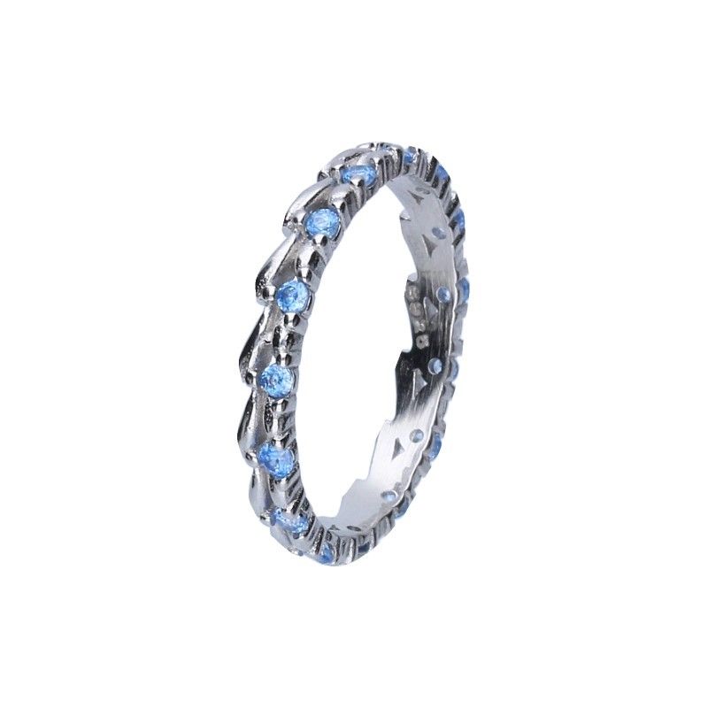 PIERŚCIONEK SREBRO PRÓBY 925 RODOWANE, NIEBIESKIE CYRKONIE.
