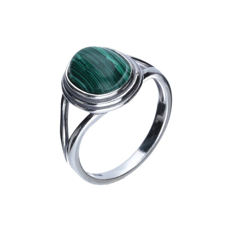 PIERŚCIONEK Z MALACHITEM, SREBRO PRÓBY 925 OKSYDOWANE, WYMIARY KAMIENIA 13mm X 11mm.