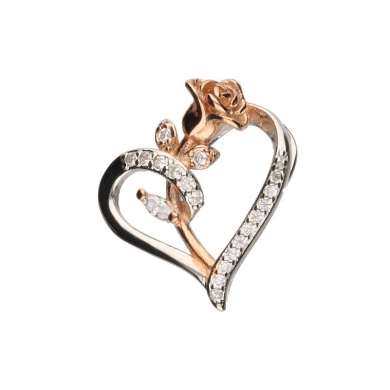 Biżuteria srebrna, zawieszka w kształcie serca i różą to romantyczny i piękny dodatek do Twojej kolekcji. Zawieszka serca jest rodowana, co nadaje jej wyjątkowego połysku i ochrony przed utlenianiem. Róża, złocona na różowo, dodaje delikatności i kobiecości. Dodatkowo, obie zawieszki ozdobione są białymi cyrkoniami, które błyszczą i dodają im elegancji. Ta urokliwa biżuteria srebrna z zawieszką serca i różą z cyrkoniami jest doskonałym wyborem dla tych, którzy pragną nosić biżuterię, która wyraża ich miłość, delikatność i dodaje im blasku.