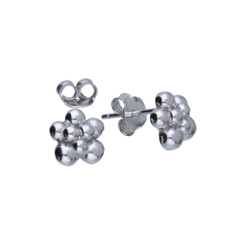 KOLCZYKI NA SZTYFCIE, SREBRO PRÓBY 925 RODOWANE, GŁADKIE KULKI POŁÓWKI O RÓŻNEJ ŚREDNICY, WYMIARY KOLCZYKÓW 8mm X 9mm.